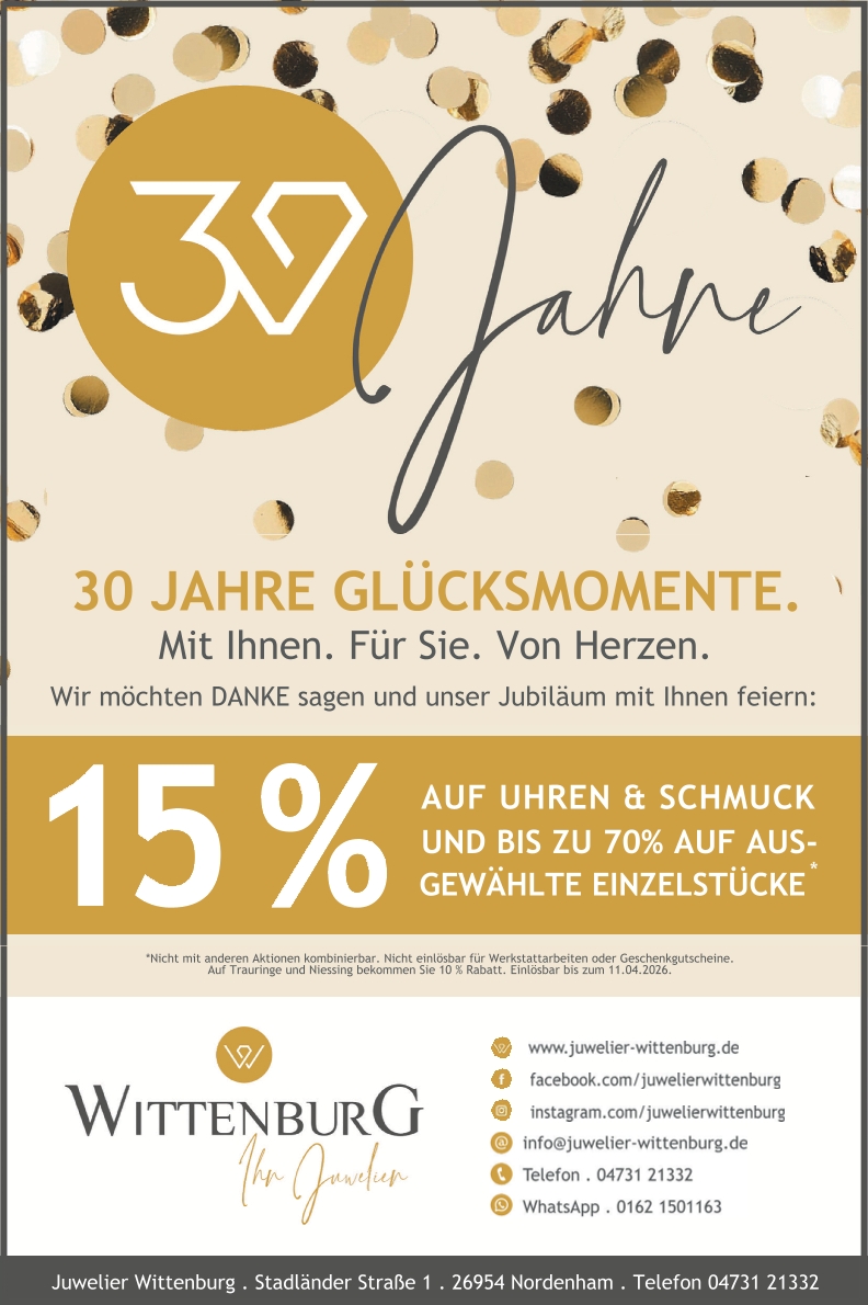 - Jubiläum | Juwelier Wittenburg in Ellwürden - Galerie